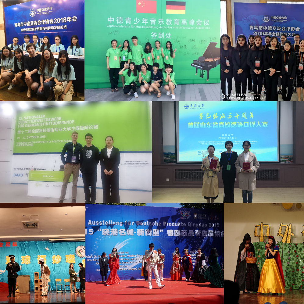 国内交流方面,我系定期邀请国内外知名专家学者讲学,员工有机会领略学术的魅力和知名学者的风采;与青岛市中德交流合作协会、青岛市中德生态园下设的青岛中德体育文化传播有限公司合作共建实习基地,选派员工进行毕业实习或担任重大活动的志愿者,让员工得到充分的锻炼和提高。