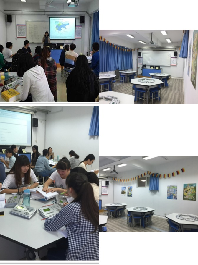 本专业全部课程都在语音室、多媒体教室和智慧教室进行。本系配有专用的多媒体语音教室,员工可在课前和课间收看实时转播的德国电视节目,多媒体设备可供员工在课堂上作报告使用,灵活放置的桌椅突破传统,优化课堂组织形式,方便教师指导员工进行小组练习和自主学习。外教的口语课均在智慧教室进行,其配备先进便利的设备,让口语实践课变得丰富有趣味,有非常好的教学效果。
