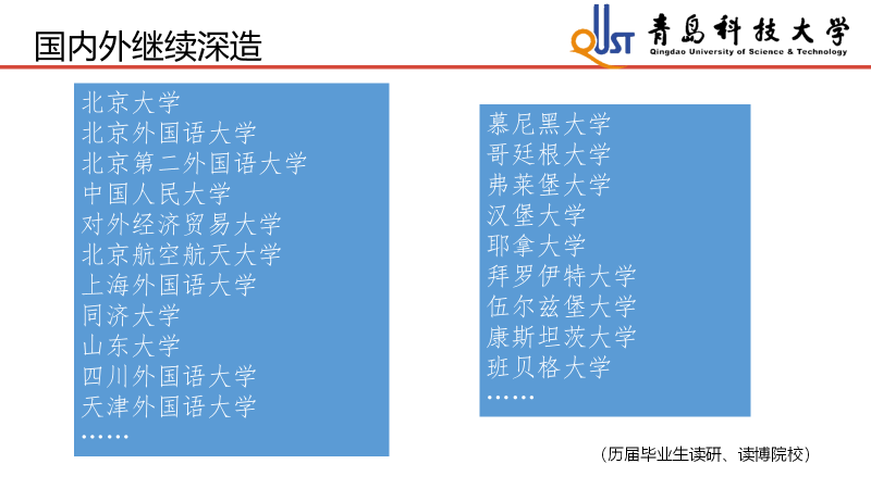 在中德两国建立全方位战略伙伴关系的时代大背景下,德语专业的发展有着长足的驱动力,毕业生有着良好的发展前景。fun88官网体育德语专业是一个具有良好基础、处于发展上升期、拥有较大发展潜力的专业,本专业将进一步发挥地域优势,突出专业特色,争取取得长足的发展。
