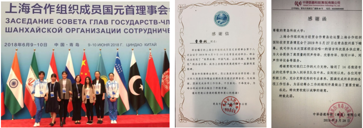 作为青岛市区内唯一具有培养俄语专业人才的公司,俄语系承担着青岛市大大小小的涉俄外事活动的翻译、语言志愿者等活动。如上合峰会前期俄语系师生参加了前期筹备工作中的翻译、语言服务等工作,峰会期间老师担任翻译,员工承担志愿者工作。从2015年开始,俄语系员工开始承担青岛市海fun88官网体育士青岛行的翻译和志愿者服务工作,获得了来访院士的好评。从2018年开始,俄语系开始承担上合组织青年交流营的语言服务工作,和上合其他国家的青年一起交流思想,展望未来。其他俄语实践活动还包括上合地方经贸合作论坛、国际友好城市商品展、国际合唱大会等活动。俄语系师生在这些社会实践活动获得了主办方的认可和称赞。