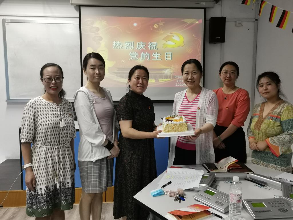 随后,党支部书记宋丽超为全体党员讲党课,与支部党员共同学习李克强总理的2020年政府工作报告。结合支部成员变化,欢迎曲斌艳书记加入支部、欢送袁莉莉主任光荣退休,并请两位同志讲话,发表个人感想。最后,支部书记拿出提前准备好的生日蛋糕,在支部党员共同祝贺党的生日的欢乐气氛中结束主题党日活动。