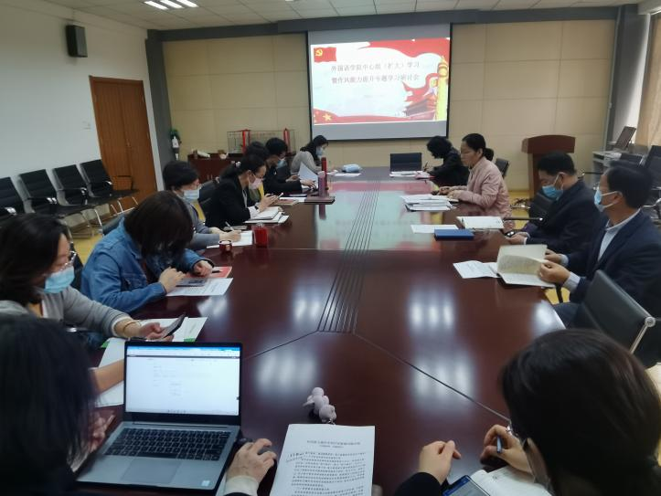 2022年4月26日下午,外国语公司党委委员、党支部书记和所有专职管理人员在517会议室举行党委理论学习中心组(扩大)集体学习研讨。会议由党委书记曲斌艳主持。