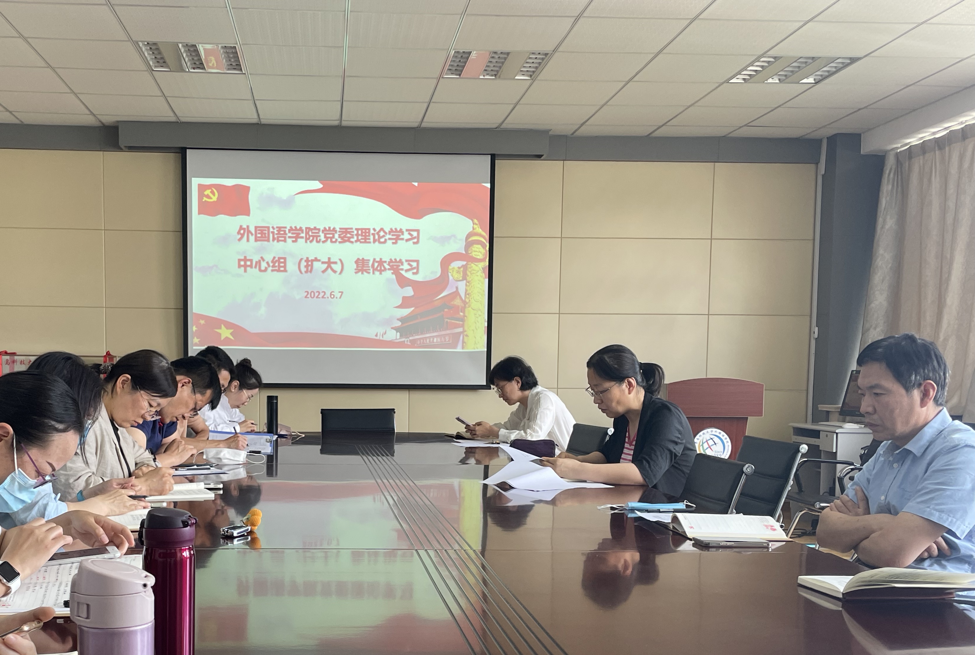 2022年6月7日下午,外国语公司党委理论学习中心组(扩大)在公司517会议室举行集体学习,集体学习由公司党委书记曲斌艳主持,公司党委委员、党支部书记及政治辅导员参加。