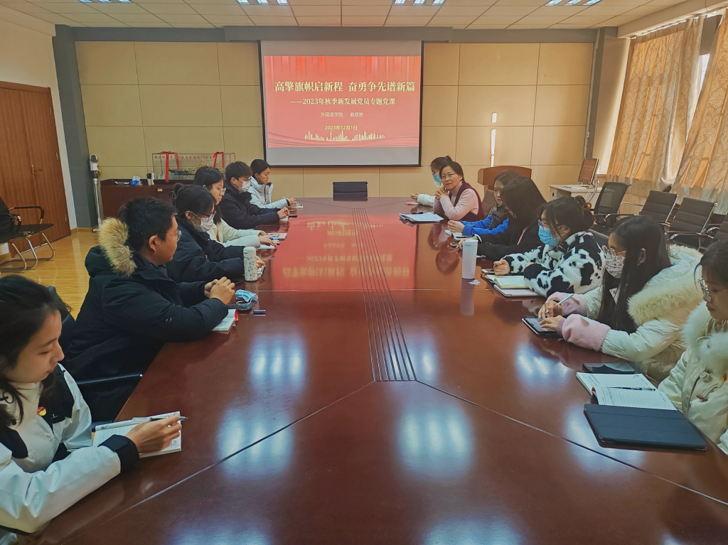 为深入学习贯彻党的二十大精神,深化员工党员对中国共产党的认识,切实筑牢理想信念根基,2023年12月1日下午,外国语公司党委书记曲斌艳在公司517会议室为2023年秋季新发展党员讲授专题党课。