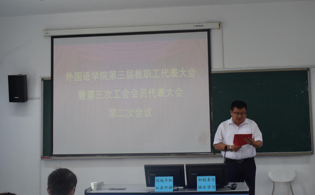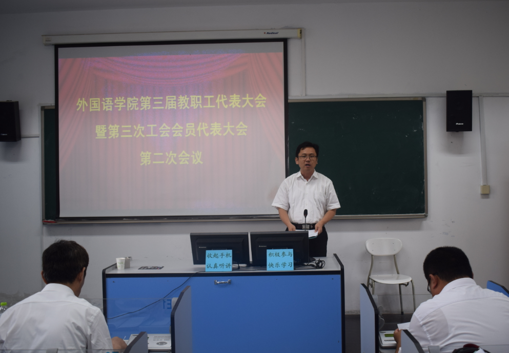 2019年7月17日,公司第三届教职工代表大会暨第三次工会会员代表大会第二次会议在418语音室召开,应到代表60人,实到52人。会议由党总支副书记兼副经理宋飞主持。