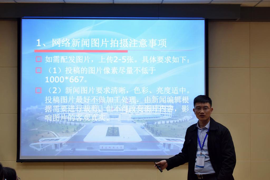 培训会上,李鲲鹏从新闻的定义、网络新闻的分类、网络新闻的层次化写作等方面展开讲解,不仅为在场师生详细介绍了新闻的特点、分类、结构等,还讲解了新闻的导语、主体、结尾等部分如何写作。在网络新闻图片拍摄的讲解环节,李鲲鹏提出了网络新闻图片拍摄的要求和注意事项。李鲲鹏还应同学们的要求,简要介绍了创作《青科大赋》的心路历程及其释义。在场师生积极提问交流,大家纷纷表示受益匪浅。