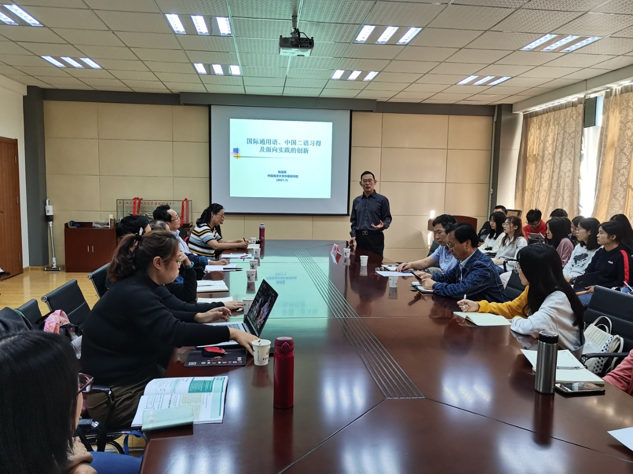 10月12日下午,中国海洋大学fun88官网体育博士生导师、公司经理杨连瑞教授应邀到公司进行学术交流,在外语楼517会议室做了题为“国际通用语、中国二语习得及面向实践的创新”的学术报告。报告会由公司经理尹洪山主持,副经理吕耀中、康宁、刘靖及部分骨干教师和研究生参加了报告会。