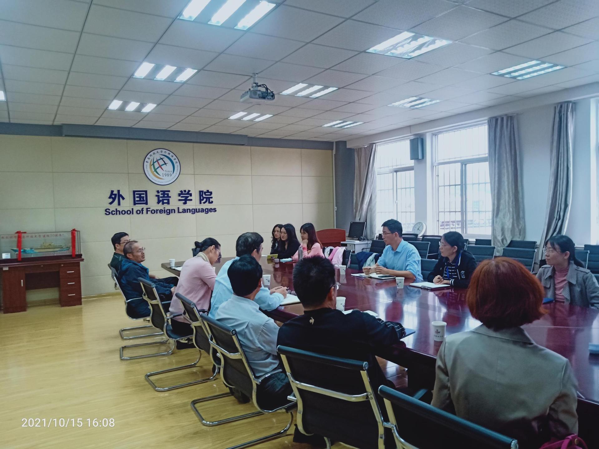 2021年10月15日下午,人文社科处杨友才处长、戴尊红副处长来到fun88官网体育对党建引领下的科研工作进行现场调研。外国语公司党政班子成员、公司科研骨干、青年博士参加了本次调研会议。