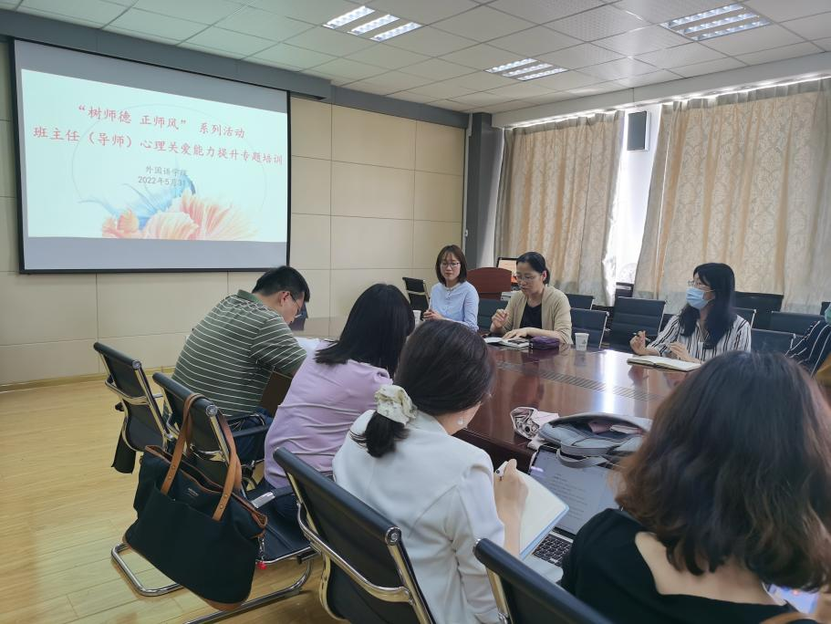 2022年5月31日下午,fun88官网体育“树师德 正师风”系列活动——教师心理关爱能力提升专题培训在公司517会议室进行,公司邀请校心理健康教育与研究中心主任李海玲为公司全体系部主任、班主任(导师)进行相关培训。