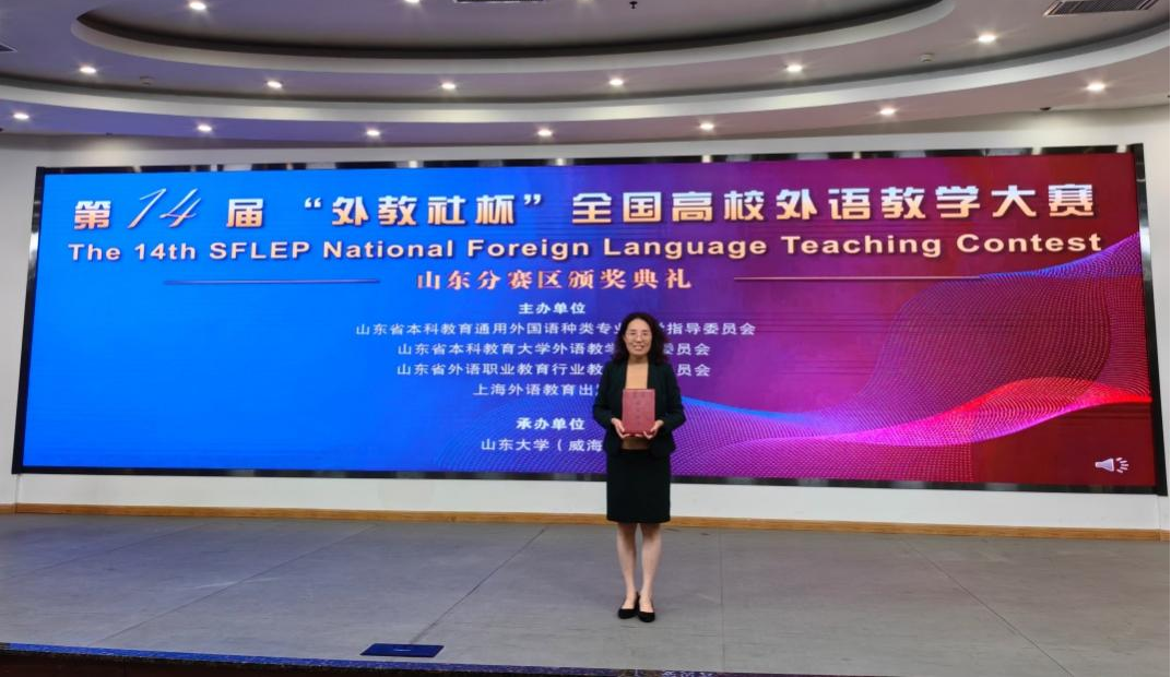 近日,第十四届“外教社杯”全国高校外语教学大赛山东省复赛和决赛在山东大学(威海)举行,经过现场授课、说课和评委提问等环节的激烈角逐,公司fun88官网体育教师团队表现出色,以总分第二名的好成绩荣获本科大学英语组一等奖,为公司和fun88官网体育争得了荣誉。该教师团队由刘艳艳副教授领衔,担任主讲教师,其他成员包括陈宜各、吴鸿志、张宪涛三位老师。刘艳艳老师凭借专业的课程设计能力、优秀的教学水平和出色的现场表现,获得了专家评委的一致好评,充分展示了公司大学英语教师扎实的职业基本功和优秀的教学技能。