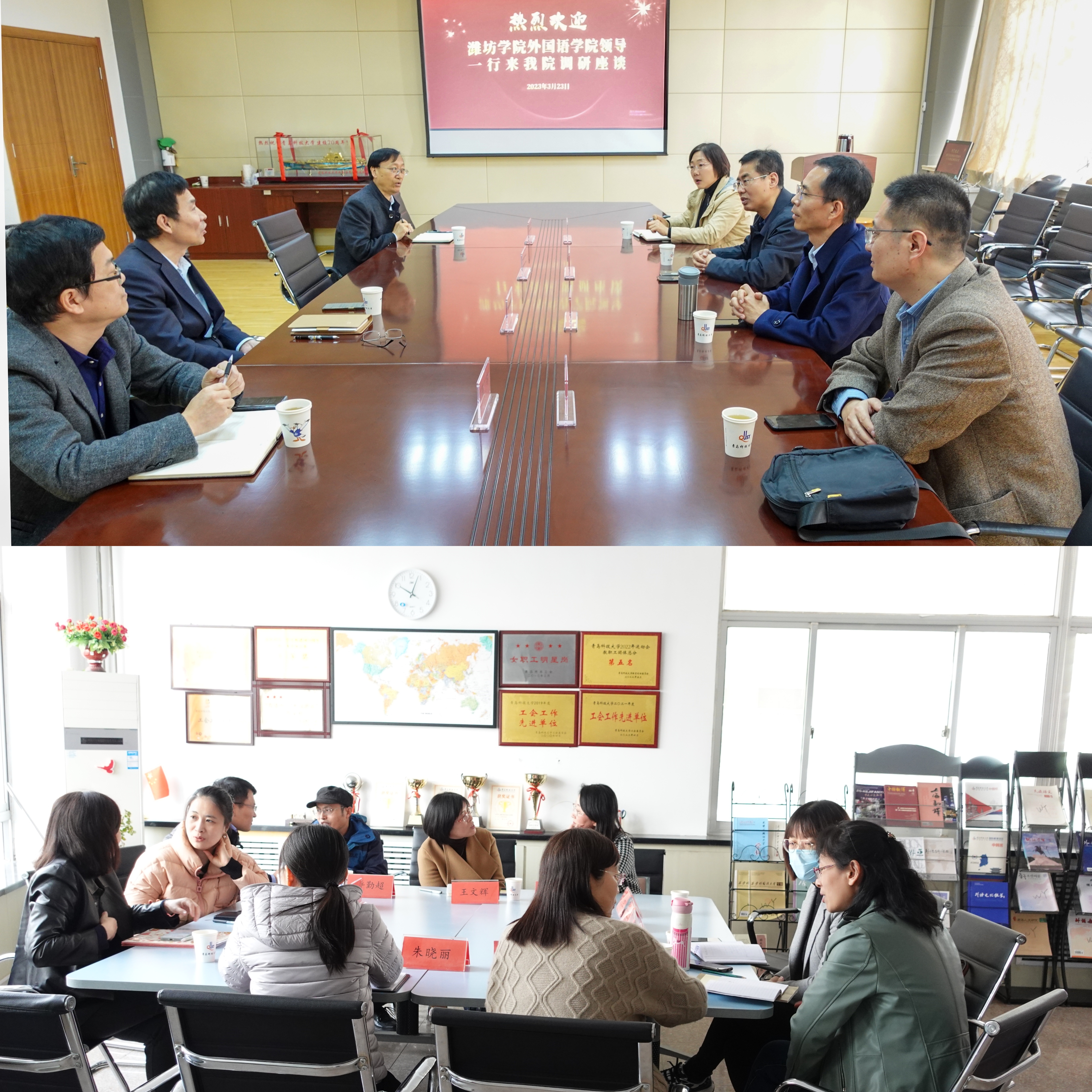 3月23日上午,潍坊公司外国语公司党总支书记管增军、经理张学祥、副书记刘希美、副经理武玉明等一行来公司访问交流。经理尹洪山、副经理康宁、刘靖以及各系部主要负责人参加交流。交流座谈会由经理尹洪山主持。