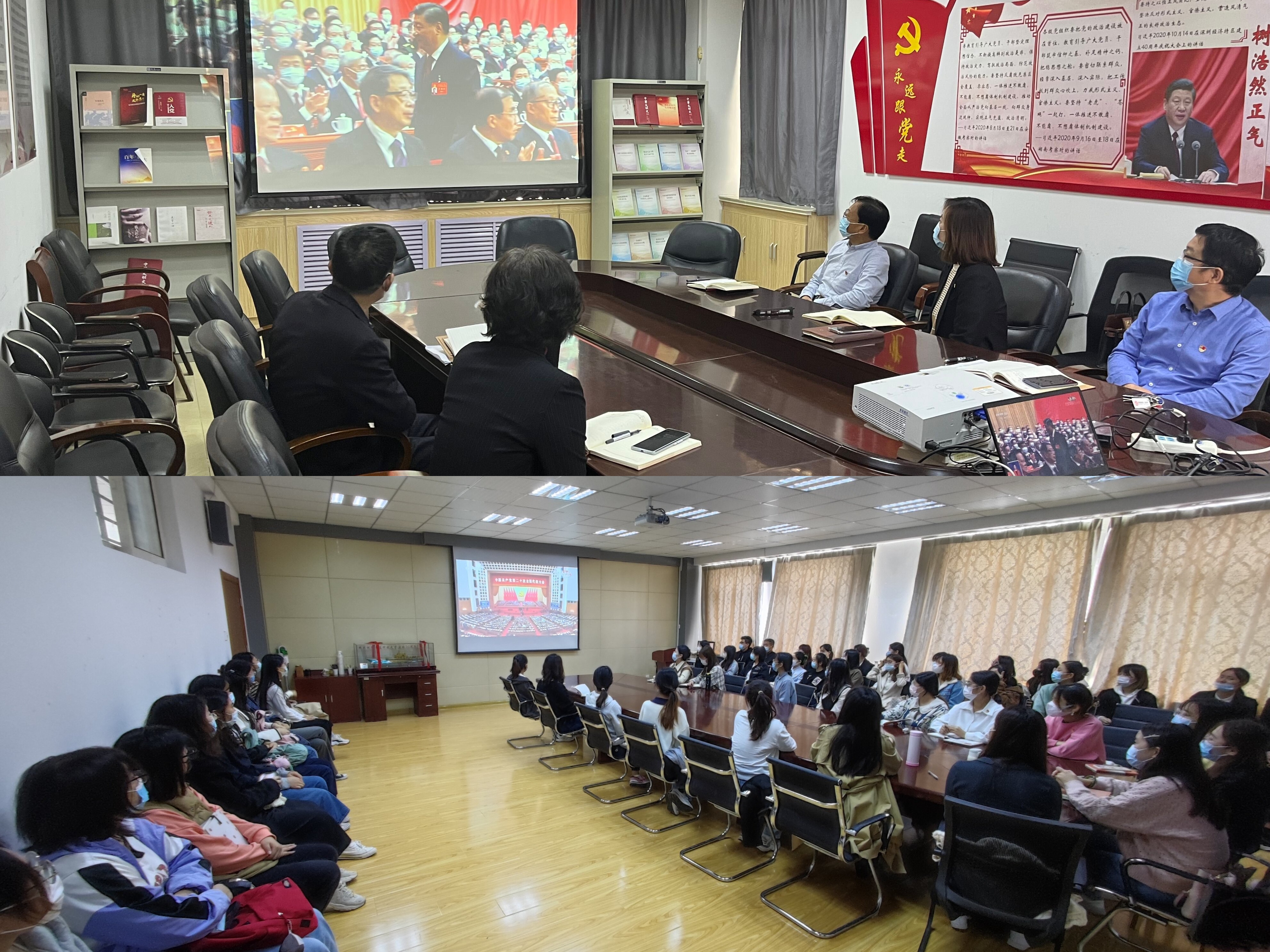 10月16日上午,外国语公司党委组织全院师生收听收看党的二十大盛况直播。公司党委理论学习中心组成员在公司楼502会议室集中收看,fun88官网体育研究生党支部、员工党支部党员在fun88官网体育楼517会议室集中收看,2022年秋季入党积极分子和发展对象在弘毅楼B区102教室集中收看,各党支部、团支部组织本支部党员、团员通过多种形式收听收看。公司广大师生认真聆听、学习习近平总书记代表十九届中央委员会所作的报告,备受鼓舞,大家纷纷表示要持续深入学习领会报告精神,以实际行动贯彻报告精神,为全面建设社会主义现代化国家、全面推进中华民族伟大复兴贡献力量。
