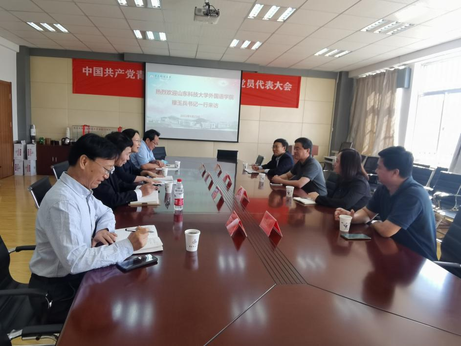 9月23日上午,山东科技大学外国语公司党委书记穆玉兵、副经理李允、李庆学等一行来公司访问交流。经理尹洪山、副经理吕耀中、康宁参加交流,公司党委书记曲斌艳主持交流座谈会。