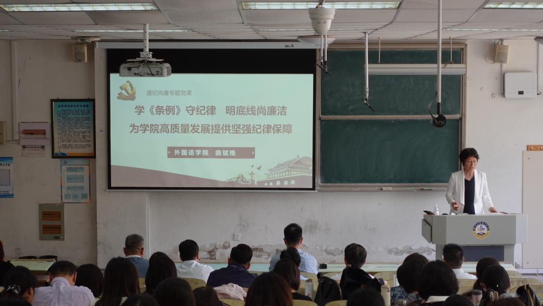 为深入贯彻习近平总书记关于党纪学习教育的重要讲话和重要指示精神,落实全面从严治党要求,强化党员纪律意识、提升党性修养,6月4日下午,外国语公司党委书记曲斌艳在弘毅B101以《学条例守纪律 明底线尚廉洁为公司高质量发展提供坚强纪律保障》为题讲授“遵纪尚廉”专题党课,公司全体师生党员参加。