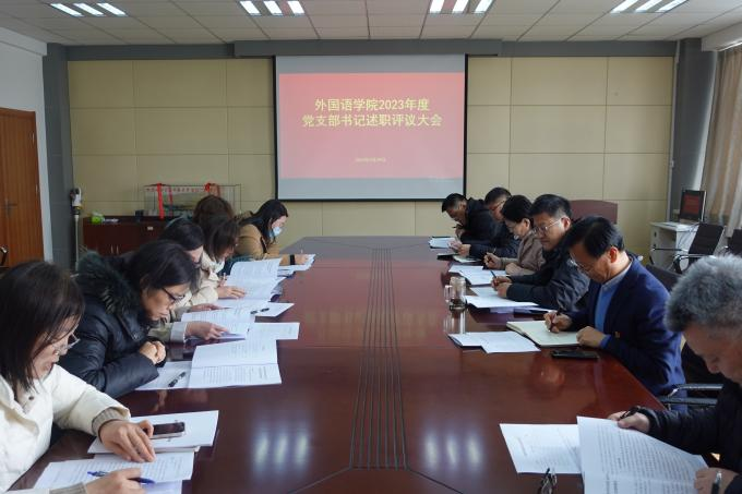 本次党支部书记述职采取现场述职和书面述职相结合的形式,英语系党支部书记王丽、大学英语第一教研室党支部书记孟婧、办公室党支部书记宋丽超、研究生党支部书记刘妍君逐一进行了现场述职;多语种党支部、大学英语第二教研室党支部和员工党支部采取书面形式进行述职。