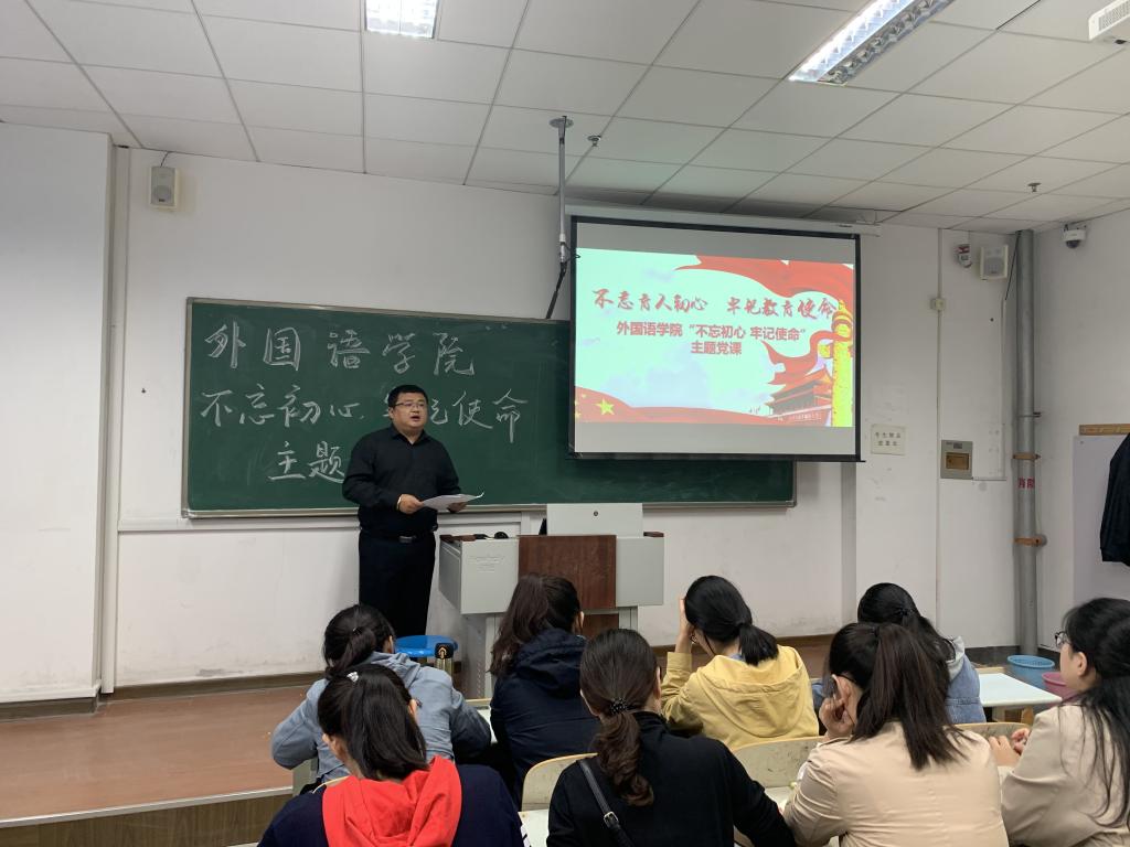 10月22日,fun88官网体育于明德楼441教室召开“不忘初心、牢记使命”主题党课活动,外国语公司党总支副书记宋飞给fun88官网体育全体员工党员上了非常有意义的一堂党课。