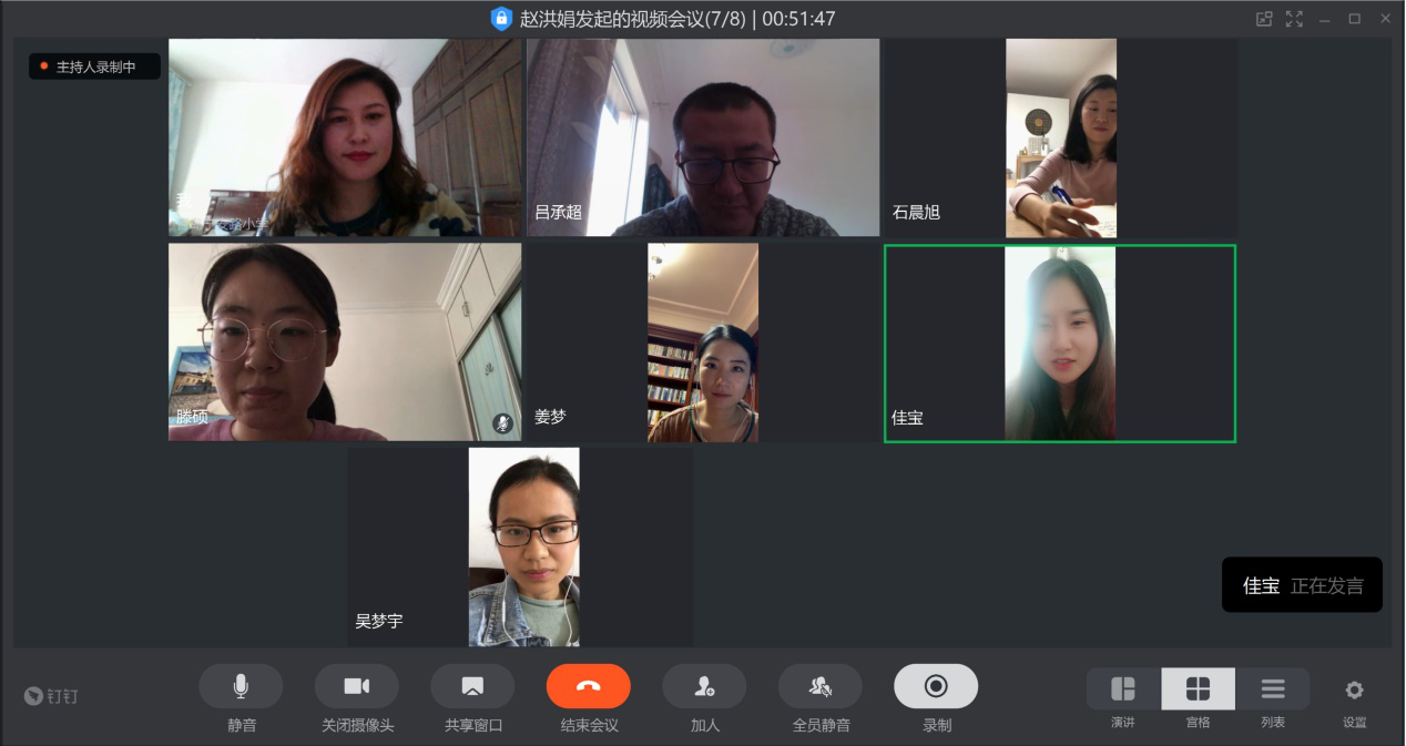 本着“疫情当前,科研不停”的原则,团队成员在疫情期间仍积极搜集研究资料,开展相关学术研究。本次视频会议,团队成员相互交流了近期的研究成果,并对课题申报、论文撰写与发表、新进教师研究方向选择及本团队在后疫情时期的研究规划进行了交流讨论。