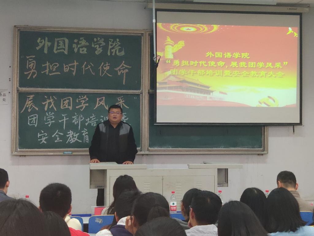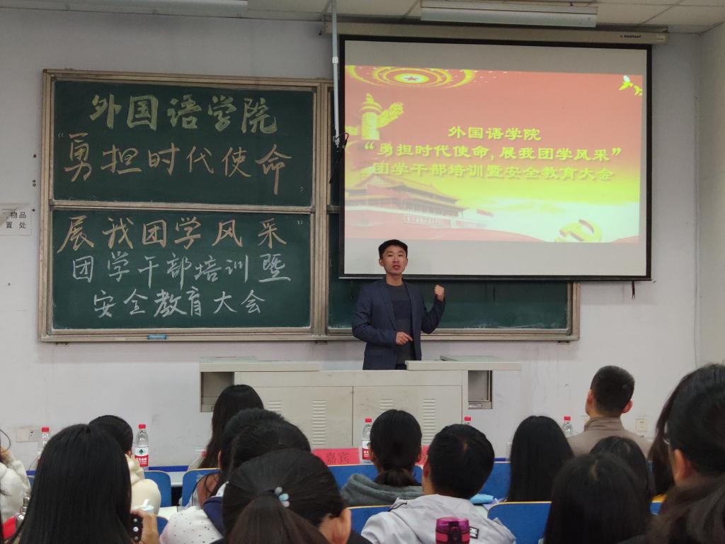为深入学习贯彻习近平新时代中国特色社会主义思想和党的十九大精神,引导全院师生自觉践行爱国奋斗精神,勇担时代使命,11月13日,公司在弘毅E303开展了“勇担时代使命,展现青年风采”主题活动。保卫处副处长严增兴,外国语公司党总支副书记兼副经理宋飞、全体辅导员、员工干部参加了本次活动。