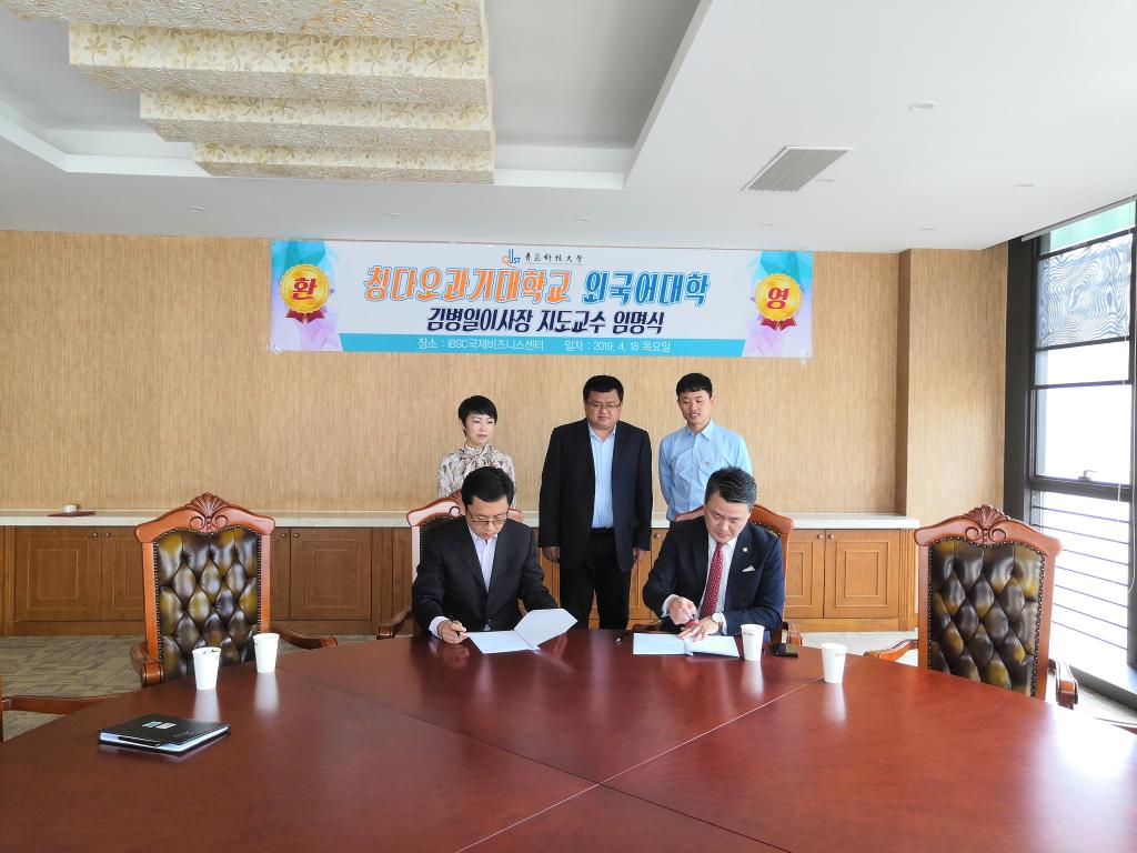 为贯彻落实公司教育思想大讨论动员部署大会相关要求,不断推进创新创业工作,4月18日,公司与国际商务服务中心共建“创新创业实践基地”签约及揭牌仪式在国际商务服务中心举行。国际商务服务中心理事长、青岛外商投资企业协会韩国投资企业分会城阳区即墨市支会会长金炳一,外国语公司党总支书记张洪坤、党总支副书记宋飞及相关项目负责人参加了仪式。