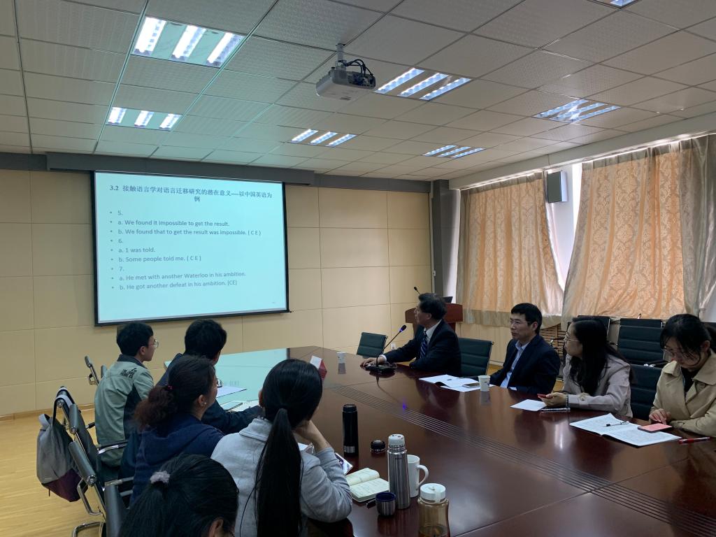 5月8日下午,上海交通大学fun88官网体育教授、博士生导师俞理明应公司邀请在外语楼517室作了题为《语言迁移新视角》的报告。报告会由尹洪山经理主持,副经理吕耀中、经理助理刘靖及部分教师和研究生参加了报告会。