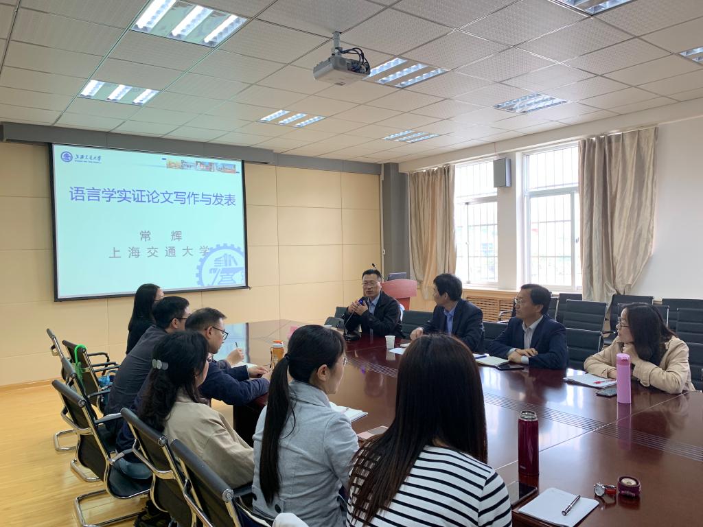 5月17日下午,上海交通大学常辉教授莅临fun88官网体育,在517会议室作了题为《语言学实证论文写作与发表》的报告。报告会由尹洪山经理主持,副经理康宁、经理助理刘靖及公司部分教师和研究生参加了报告会。