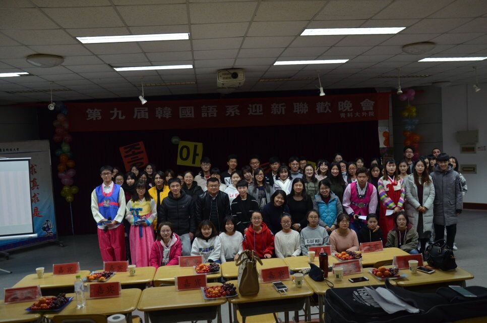 11月24日下午6点,fun88官网体育韩语系在南苑老员工活动中心举办了第九届韩语系迎新联欢会。外国语公司党总支副书记兼副经理宋飞,韩语系主任赵爱仙,分团委老师贾明明、王雨欣,韩语系老师刘淑双、毕信燕、李胡玉,外教崔柔永老师参加了本次活动。
