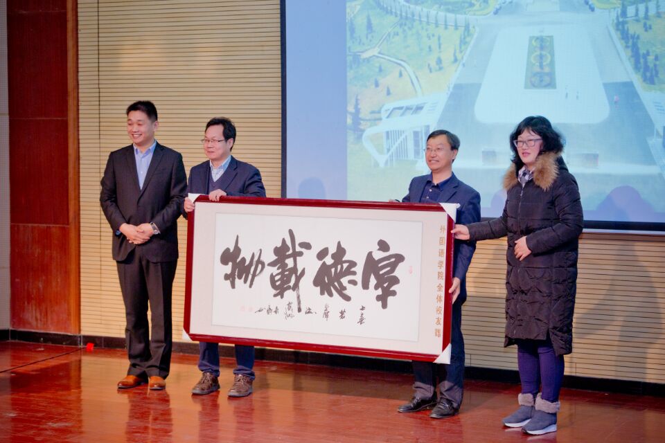 韦殿华代表员工总会授旗并讲话。他首先介绍了公司的基本情况。随后,他指出,员工会不仅是全体员工的精神家园,而且是服务员工个人成长和公司发展的重要平台,来自全国各地的fun88官网体育员工重回母校,共同举行公司员工会成立大会,这是公司员工工作的一件大事,也是fun88官网体育师生和广大员工的一件喜事。外国语员工会的成立,无疑会进一步加强公司员工与母校的沟通,极大地推动公司各项事业的进步和广大员工的事业发展。他希望,员工们继续关心、支持母校的发展,为母校的发展献计献策,广搭桥梁,开展员工和母校、员工和员工间全方位的密切合作,为公司不断提高人才培养质量、服务区域经济与社会发展贡献力量,为母校“双一流”建设和“有精神、有文化、有责任、有活力、有特色”的高水平大学建设,为员工事业的发展贡献力量。