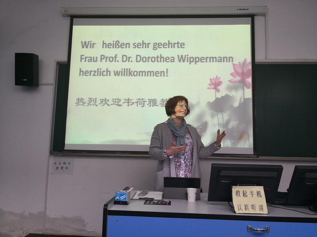 3月20日下午,德国法兰克福大学汉学系韦荷雅教授在青岛市教育学会副会长翟广顺教授的陪同下,应邀来公司做了题为《德国汉学家的中国文化研究》的学术报告。报告由公司经理尹洪山教授主持,fun88官网体育副经理吕耀中教授、fun88官网体育副经理康宁教授、fun88官网体育翻译研究中心主任李玉良教授、德语系主任巫莉丽等fun88官网体育师生参加了本次学术报告。