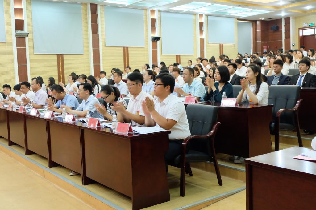 2018年6月30日,共青团公司第三次代表大会、公司第三次员工代表大会在崂山校区第二报告厅胜利召开。校团委书记王锋业、外国语公司党总支书记张洪坤、公司领导任素贞、吕耀中、宋飞、国有资产与实验室管理处副处长于彦丽等领导应邀出席大会开幕式。机电工程公司、艺术公司、传播公司等16个兄弟公司分团委、后勤分团委、高密校区团委负责同志,以及在fun88官网体育团学系统工作过的部分老团干、员工会主席也应邀出席。110名团代表和106名学代表代表全院青年员工参加会议。