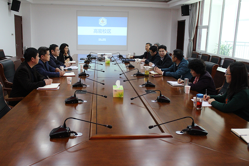 4月6日上午,公司经理尹洪山、党总支书记姜德杰等一行8人到高密校区考察调研,并与高密校区领导梁树清、官杰及相关部门负责人进行了座谈交流。