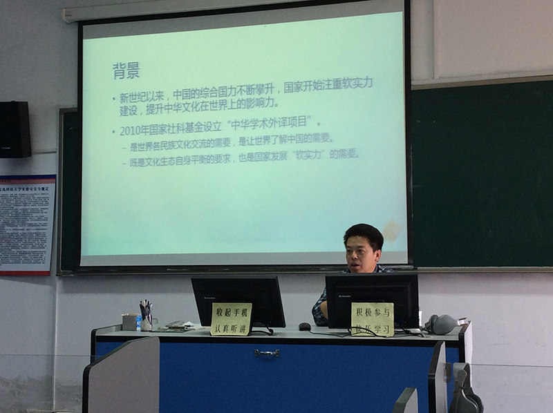 报告中,徐老师首先结合自己长期使用计算机辅助翻译(CAT)的经历和心得,深入浅出地说明了CAT的应用及研究价值。然后介绍了计算机辅助翻译在中国文化外译中的作用,并就如何有效地进行翻译项目管理以及如何借助先进的语料库和翻译技术提升效率和质量问题做了具体说明。徐老师认为,语料库和翻译研究关系密切,制作英汉平行语料库可以有效避免中国文化外译中的“翻译腔”。而应用CAT的翻译模式,可以有效地提高翻译效率和质量。