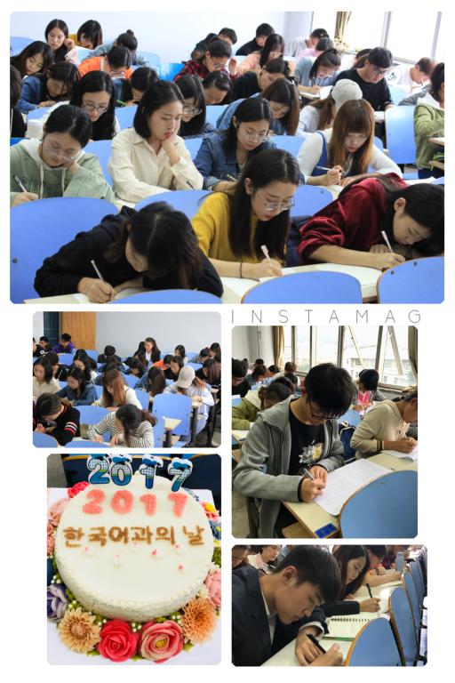 朝鲜语系主任赵爱仙主持了本次活动。此次活动主要由三个部分组成。活动第一部分,首先是比赛部分,对刚入学不久的大一新生来说,韩文写作尚且有些陌生,因此迎接他们的是韩字书写的比拼,其他年级的同学则是要挑战各种各样的命题。作文纸一发下来,同学们便开始认真地书写起来。