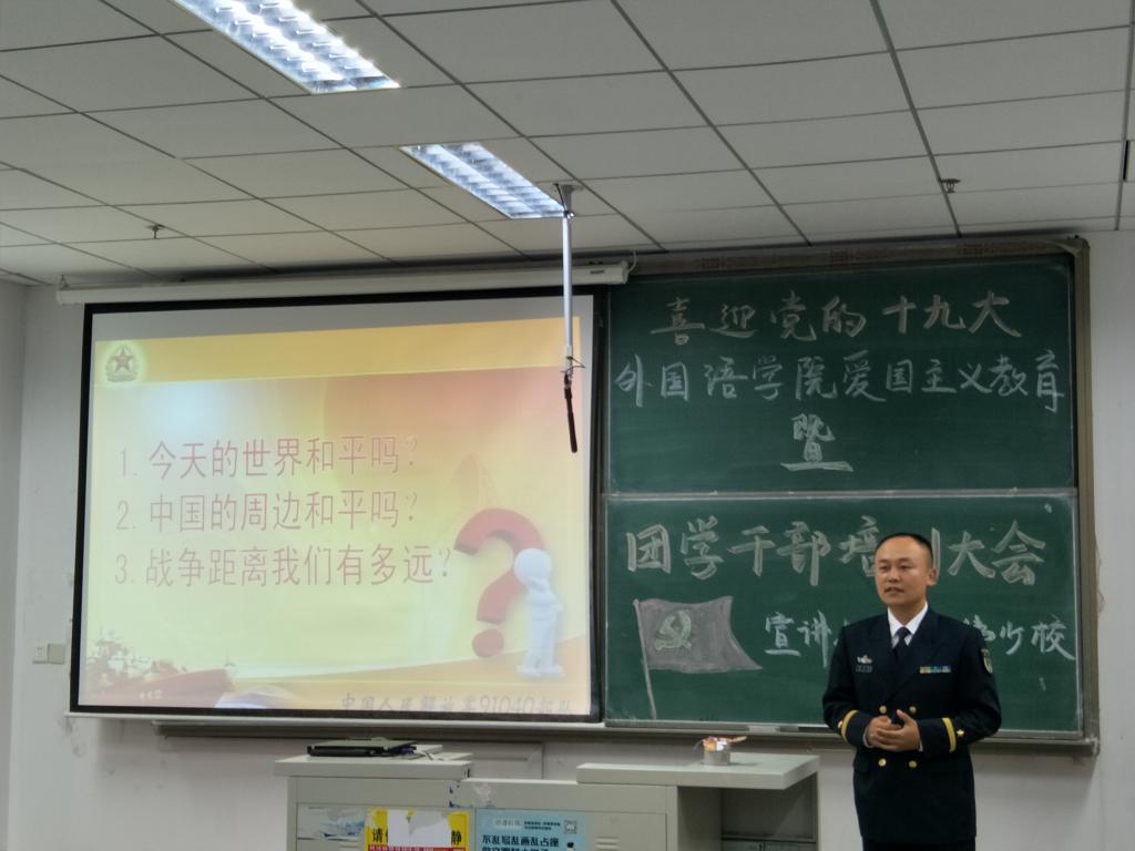 一是开展一次爱国主义专题讲座活动。10月18日下午,公司在弘毅522召开了“喜迎党的十九大——fun88官网体育爱国主义教育暨团学干部培训大会”,邀请了驻青海军史书伟少校为全院员工干部、党员、入党积极分子做了题为《中国的战略环境》专题报告。会上,史少校从“今天的世界和平吗?中国的周边和平吗?战争离我们有多远?”三个问题入手,分析了我国目前面临的战略环境,并与参会同学共同探讨了南海问题、朝核问题、中日关系、中美关系,希望同学们能够好好学习,不负光阴,为祖国的繁荣昌盛贡献自己的力量。