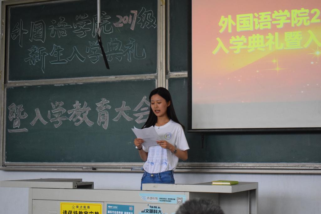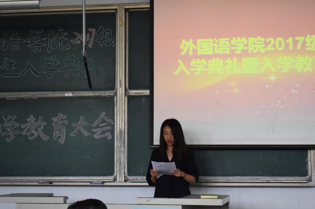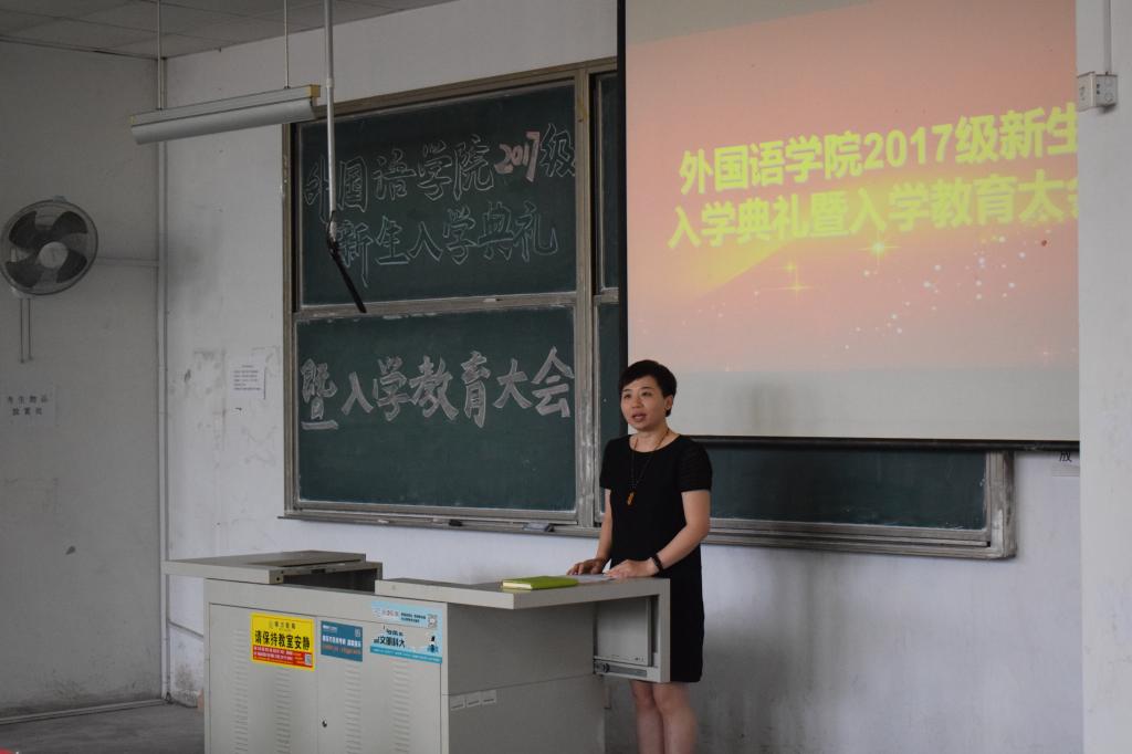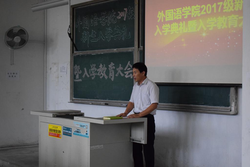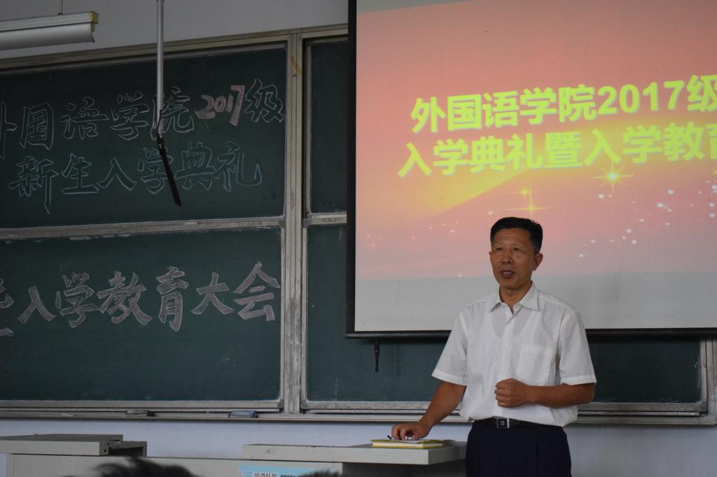 9月19日下午,2017级新生开学典礼暨专业教育大会在弘毅楼E104教室隆重举行。外国语公司党政领导尹洪山、姜德杰、任素贞、吕耀中、宋飞,各教研室主任及全体辅导员参加了本次大会。