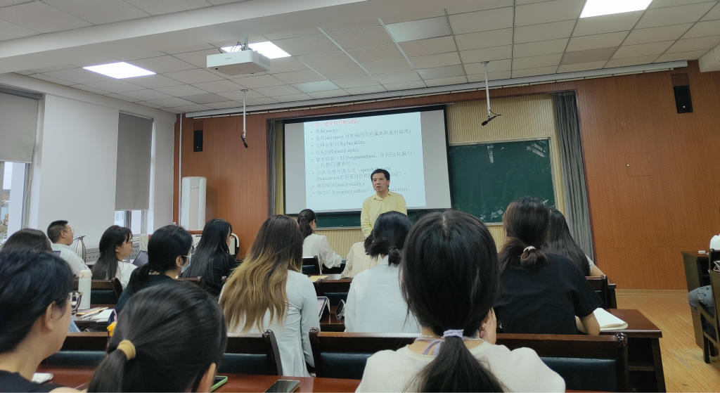 王教授从翻译批评的范畴讲起,深入剖析了描写性翻译批评的原则、方法与理论框架,提出了描写范式下文学翻译批评的五种模式,即描写—规律总结、描写—因果解释、描写—价值判断、描写—隐蔽规律揭示、描写—理论建构。在此基础上,王教授提出了文学翻译批评的十条有效路径。通过《红楼梦》《水浒传》《浮生六记》《狂人日记》等中国文学经典作品的生动案例,他结合多位翻译家的不同译本,通过对比分析,详尽讲解了文学文体学路径在翻译批评中的具体应用。讲座尾声,王教授与在座师生进行了热烈互动,针对大家提出的翻译批评领域的疑惑,他逐一给予了详尽而富有启发性的解答,赢得了在场师生的阵阵掌声。