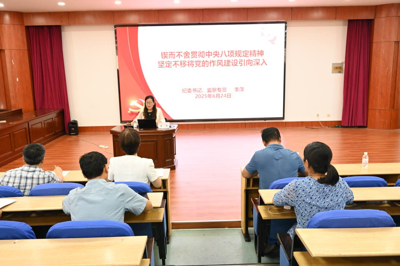 6月24日下午,公司党委常委、纪委书记、省监委驻fun88官网体育监察专员李萍为纪检监察机关、fun88官网体育、法公司师生党员讲授深入贯彻中央八项规定精神学习教育专题党课。