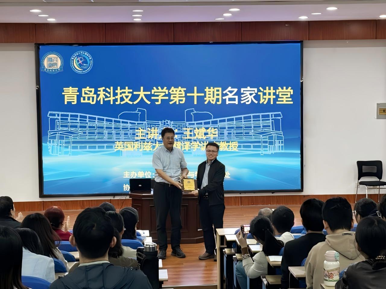 10月14日,公司第十期“名家讲堂”在崂山校区弘毅楼A201报告厅开讲。英国利兹大学翻译学讲席教授王斌华应邀作“外语学科教师与研究生的科研持续化和国际化路径探索”专题讲座。讲座由公司经理王灏主持。