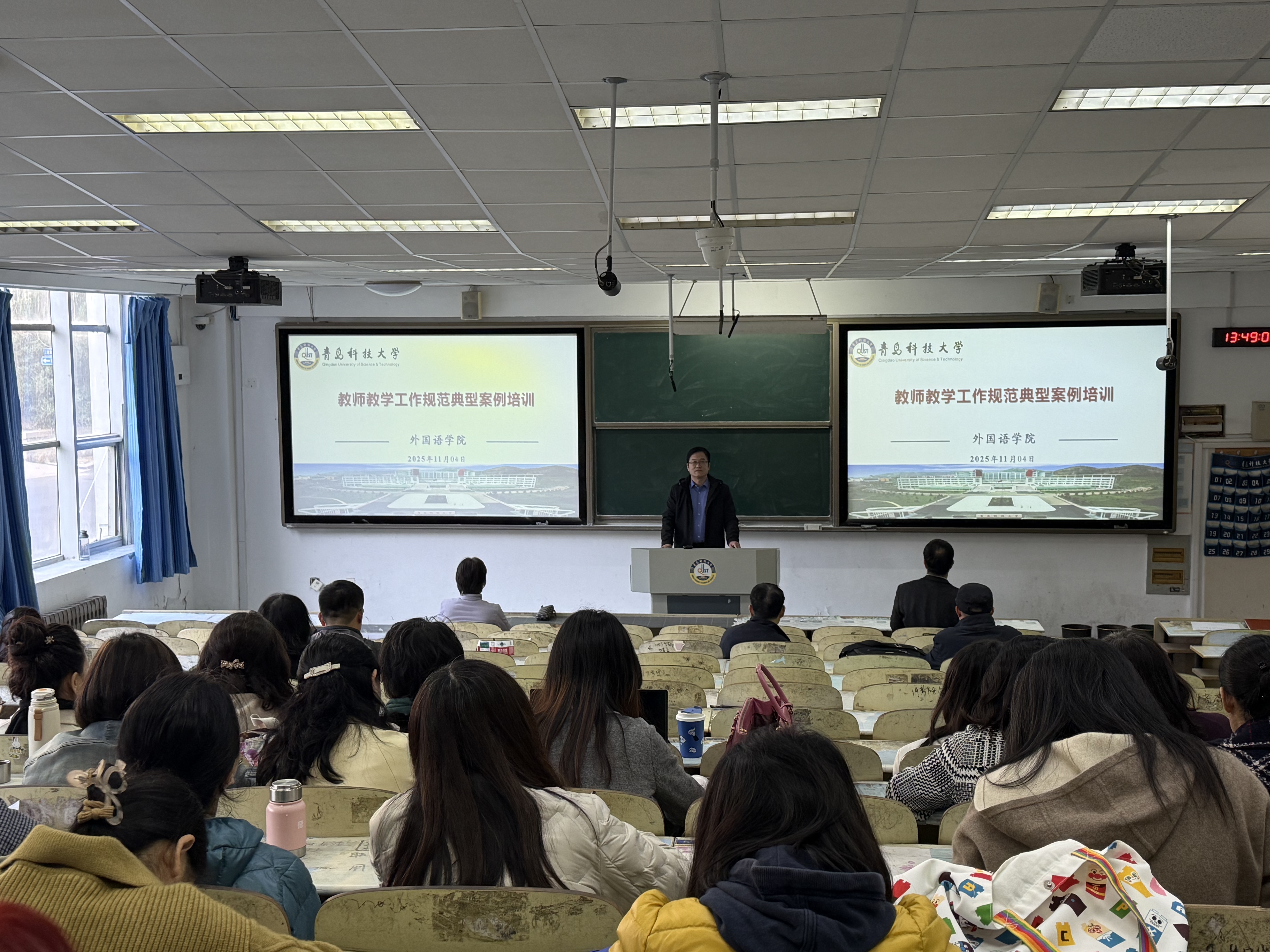 刘靖副经理结合《fun88官网体育教师教学工作规范(2022修订)》的具体条款,进行了深入浅出的典型案例培训。他选取了教学准备、课堂管理、考核评价、师德师风等关键环节中具有代表性的正反案例,进行了生动详实的剖析与解读,引导教师们明底线、知准则、强规范。培训内容紧密联系外语教学实际,针对性、指导性强,为教师们准确理解、自觉执行教学规范提供了清晰指引。