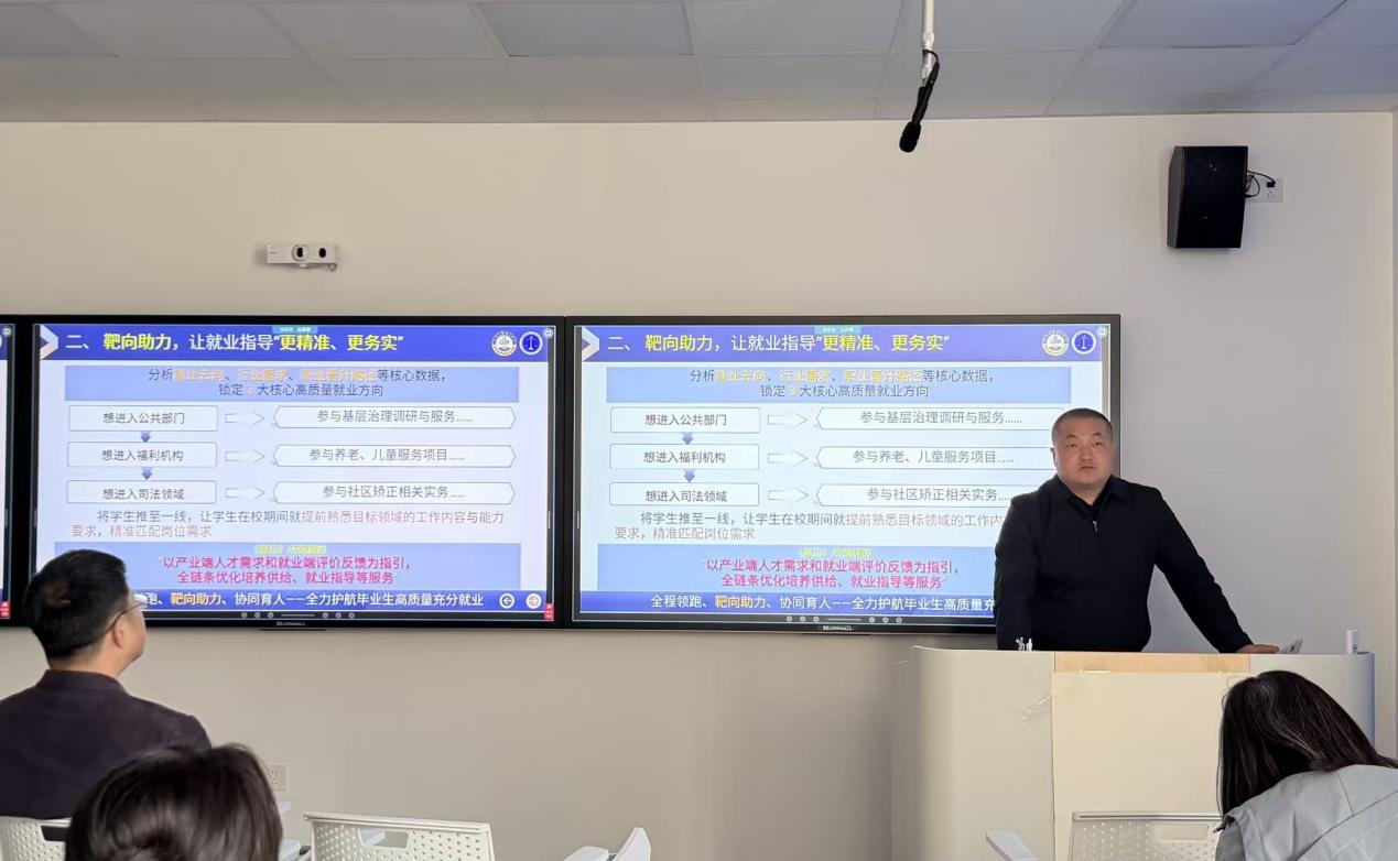 曲斌艳在讲话中强调,教育要对接社会需求、服务社会发展,就业是人才培养的重要环节,需立足人才培养体系统筹推进。要兼顾就业短期目标与员工长远发展,构建全员抓就业工作格局。全体教职工要认清形势、转变教育理念,将就业工作融入人才培养全过程,推动毕业生高质量充分就业。