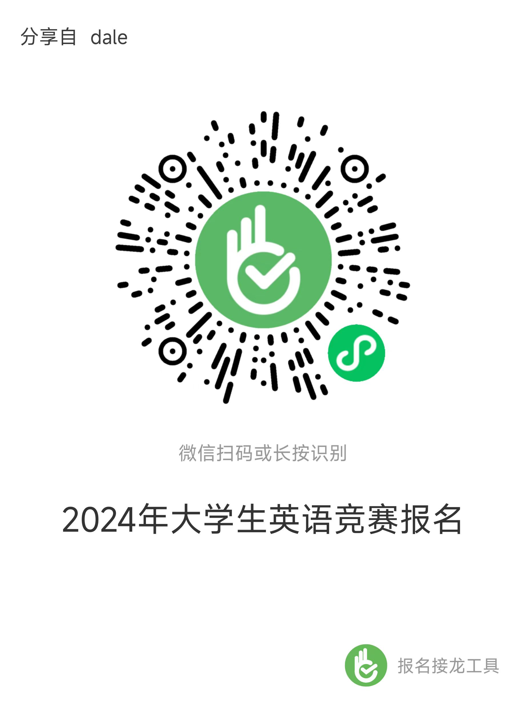 1. 报名:从2024年3月1日-2021年3月18日,通过报名接龙(微信“接龙工具”小程序,链接:https://rl.uil.ink/?r=ZTSBCYHpS或者识别下方报名图片)填写参赛员工名单、竞赛类别等信息,每人仅限填报一次,信息务必准确,报名后务必按照校区实名(班级姓名)加入对应的QQ群,群内会发布最新通知信息。报名逾期不候。根据《2024年全国老员工英语竞赛(NECCS)通知》规定,本次竞赛全部收费为50元/人。