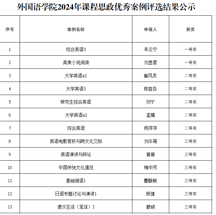 公示时间为3天,如对以上结果有异议,请向公司教学办反映。