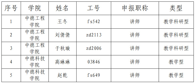另:因中德科技公司和中德工程公司无职称评审权,故委托公司对其公司教师进行职称评定,具体情况如下: