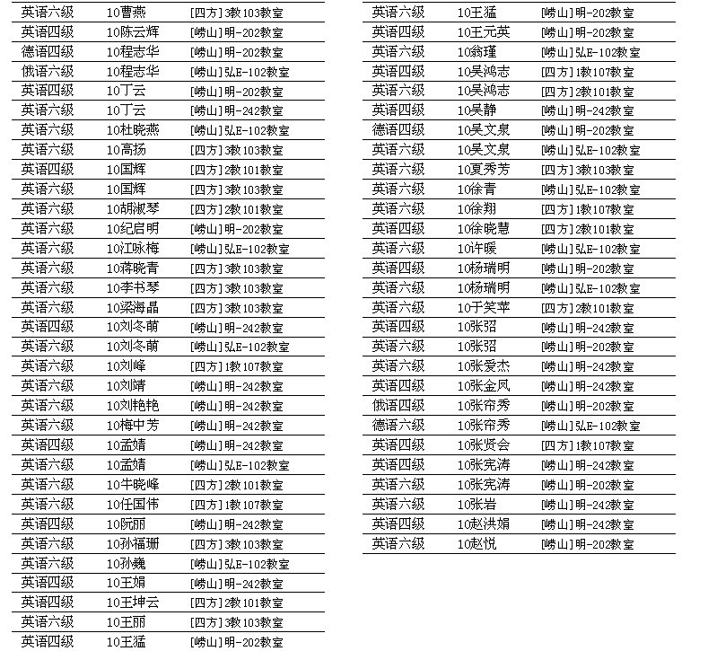 fun88官网体育四、六级监考安排