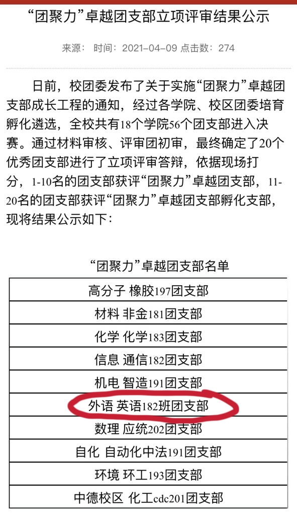 英语182团支部一直以做好青年政治引领工作为首要任务,植根团建团务基础,突出团支部政治引领作用,针对支部内青年员工在成长发展的过程中所面临的思想困惑,开展各类特色理想信念教育活动,团支部集体学习十九届五中全会精神,共青团十八届五中全会精神,开展“学党史 学四史 致敬1921“活动等,提升团支部各成员的思想水平。根据团支部实际情况,常态化开展课程答疑、专业研讨、团员结对帮扶、实践科技创新等主题团日活动,以团建促学习,以学习促发展,充分发挥专业特色优势,将政治理论学习与英语专业学习相结合,用双语探讨时政热点问题,切实提升青年员工的学业成绩、专业能力和创新品质。结合青年员工对强身健体以及体育活动的需要,建立专门跑步打卡群,切实提高团员青年身体素质,增强支部成员凝聚力。根据支部内青年员工实际需要,开展分享优秀英文影音及文学、诗歌作品活动,交流学习,提升人文素养。团支部依托各类特色社会实践、公益服务、实习实践等活动,教育引导青年脚踏实地,吃苦耐劳,开拓奋进,支部成员积极参加校庆志愿服务,“名校进名企”实习,参与各项体育竞赛志愿服务。规范开展团员发展、团员管理、团员教育、团费收缴等工作,做好推优入党工作。英语182团支部一直坚持德智体美劳五育并举,教育引导本支部青年自觉把报国之志转化为实际行动,努力成长为德智体美劳全面发展的时代新人。