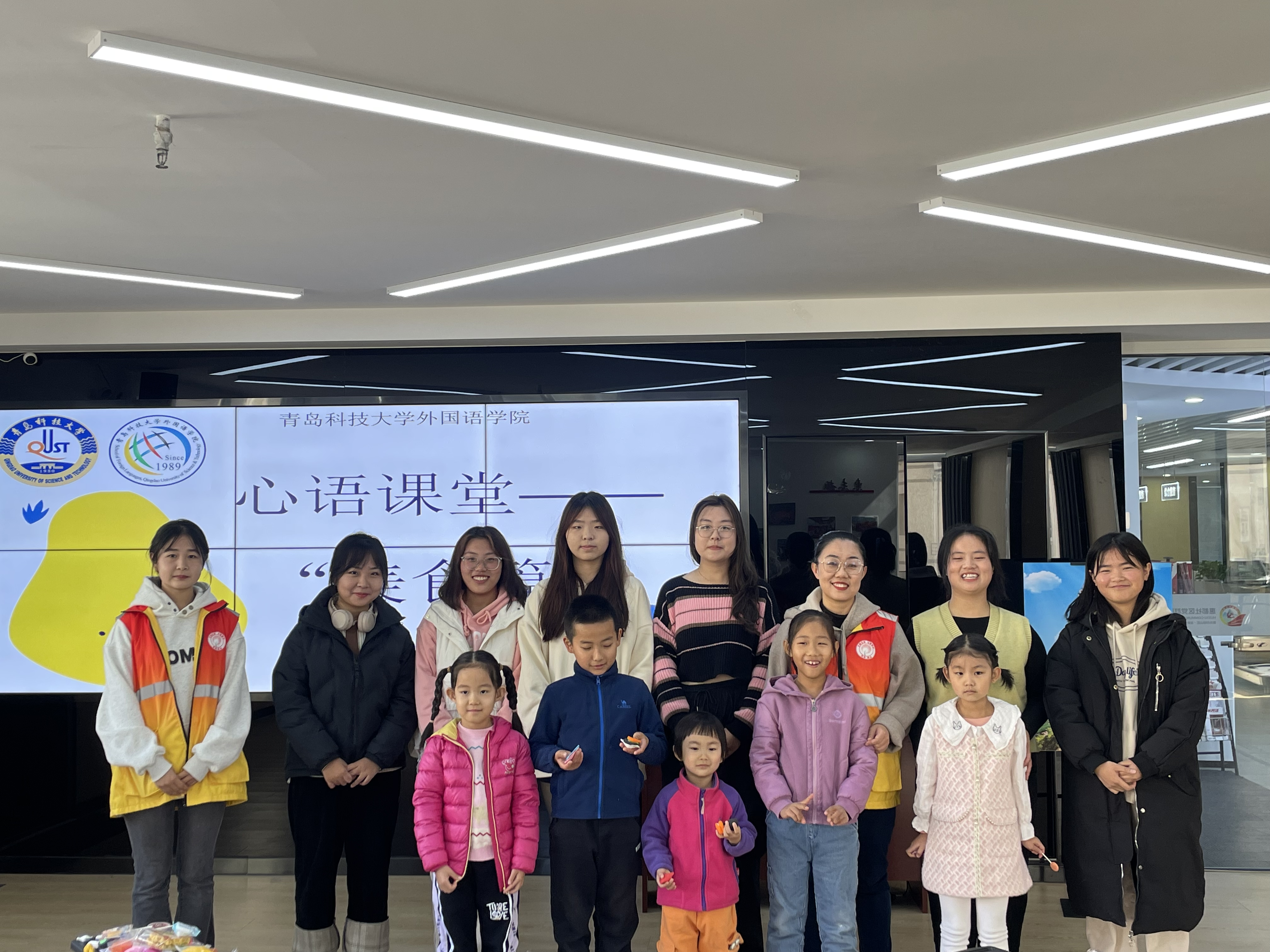 活动结束后,小朋友们和志愿者老师一起合影留念,此次fun88官网体育“心语课堂”之美食篇活动的成功举办,不仅让所有参与的小朋友们感受到了各国美食和语言的魅力,还为社区生活增添了新的勃勃生机!对于未来,fun88官网体育团支部将继续走进社区开展志愿服务,为社区带来一场场精彩的“心语课堂”。