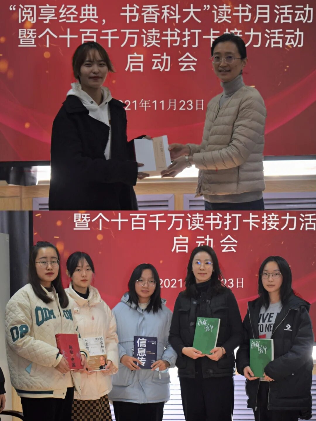 11月23日下午,公司举行“阅享经典 书香科大”读书月活动暨个十百千万读书打卡接力活动启动仪式。在读书启动会上,王晓娜书记为fun88官网体育员工会执行主席孙倩茹授书,王雨昕老师为员工代表授书。本次个十百千万读书打卡接力计划,fun88官网体育员工会选取了《习近平用典》和《习近平与老员工朋友们》两本书。启动会上,员工会全体成员表示,将以此为契机,以员工会例会、结合自身经历谈看法等形式总结本学期工作当中的成功经验,自查自改不足之处。