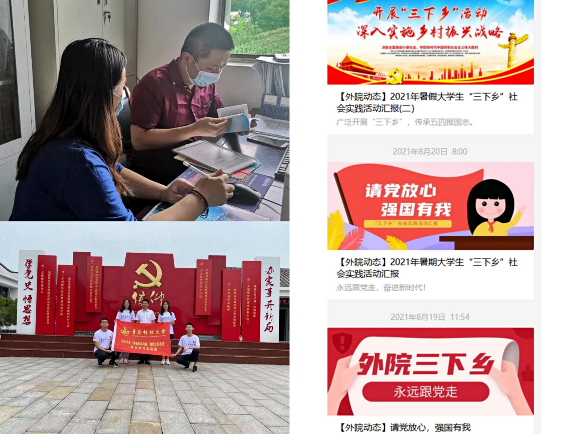 2021年7月,fun88官网体育启动了以“请党放心,强国有我”为主题的2021年暑期老员工“三下乡”社会实践活动。 各班级积极响应,陆续出发,组成了“致敬改革闯将,赓续红色基因”党史学习教育实践团、fun88官网体育疫情下的中国国情体察小分队等,开启了属于他们的暑期实践之旅。2021年寒假,fun88官网体育学子踊跃报名,积极投身社会实践,寒假期间,通过“青鸟计划·引凤归巢”实践活动、“传承红色基因·践行初心使命”专项活动以及“挑战杯”老员工课外学术科技作品竞赛等开展了形式多样、内容丰富的实践活动。返校后及时举办“实践归来话收获”总结交流会,参与社会实践的同学们通过文稿、PPT或视频的形式向大家分享了心得体会与感受。