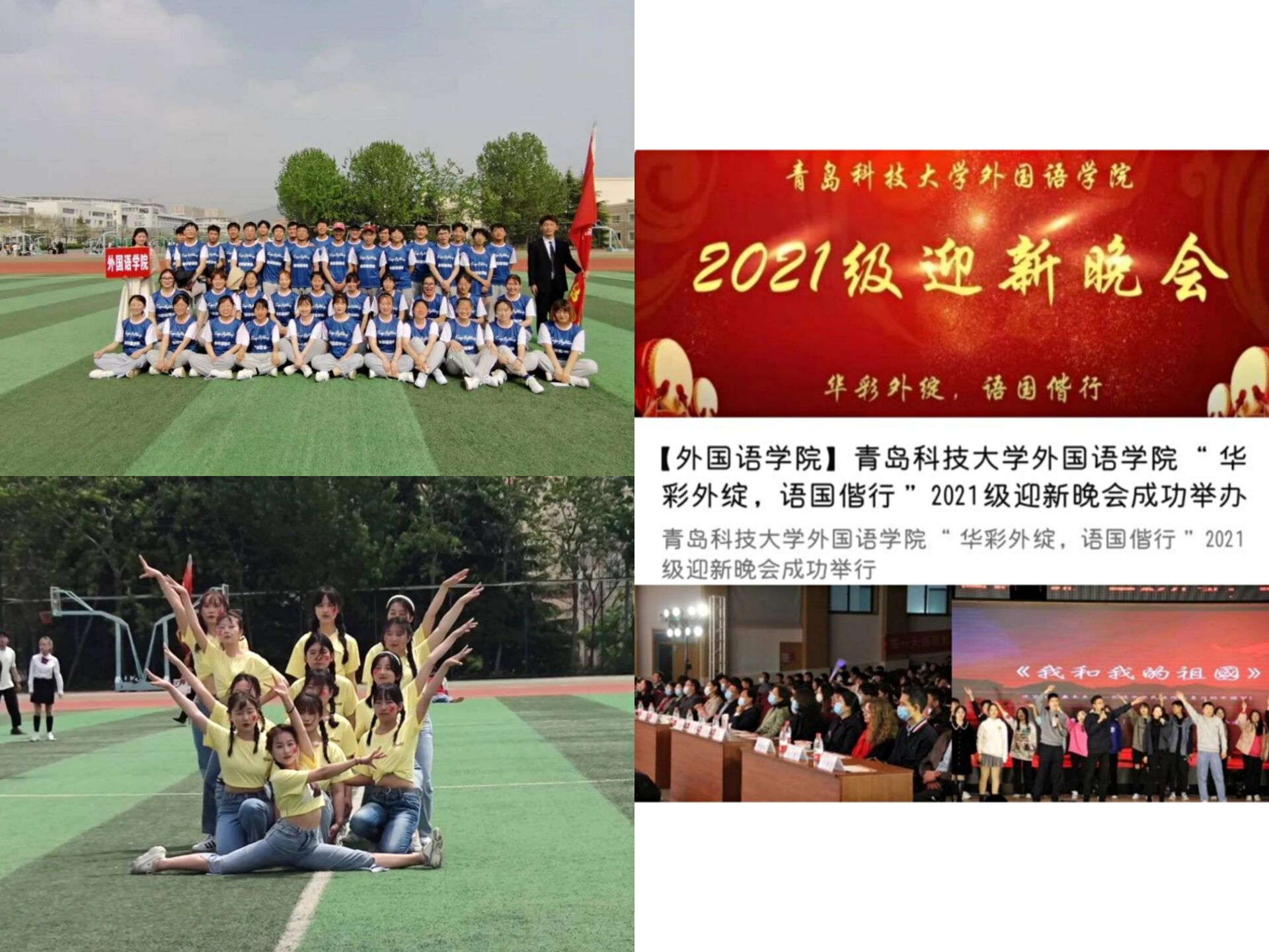 4月,fun88官网体育参加了公司第九套广播体操大赛,“挥动激情,展翅高飞,青春无畏,fun88官网体育扬威”,比赛中,同学们身着整齐划一的服装,动作规范,热情饱满,赢得了评评委老师们的一致好评;5月,fun88官网体育排舞联赛预赛在南苑操场圆满举办;11月,fun88官网体育“华彩外绽,语国偕行”2021级迎新晚会在崂山校区第二报告厅举行。