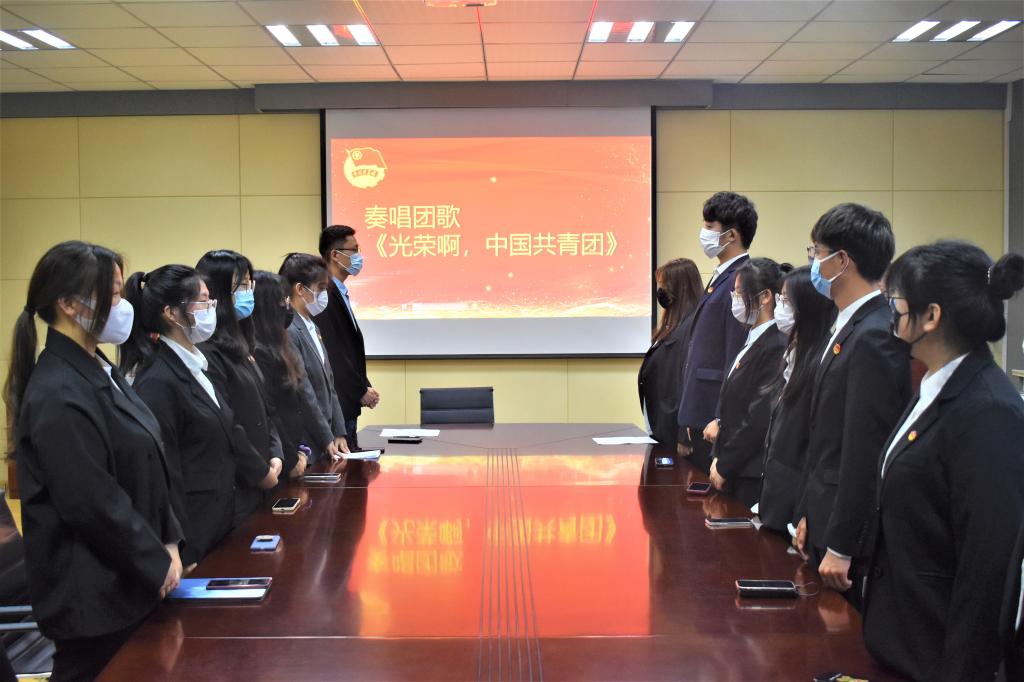 为进一步弘扬五四精神,增强“听党话、感党恩、跟党走”的思想觉悟和行为自觉,庆祝建团100周年,5月11日18:00,fun88官网体育“青春献礼二十大,百年奋进新征程“主题团课暨2022年新团员入团仪式在fun88官网体育楼517隆重举行。出席本次活动的有公司团委副书记兼学工办副主任李东阳老师、王雨昕老师和团委老师张湘钧,五位新团员以及2021级全体班长、团支书。