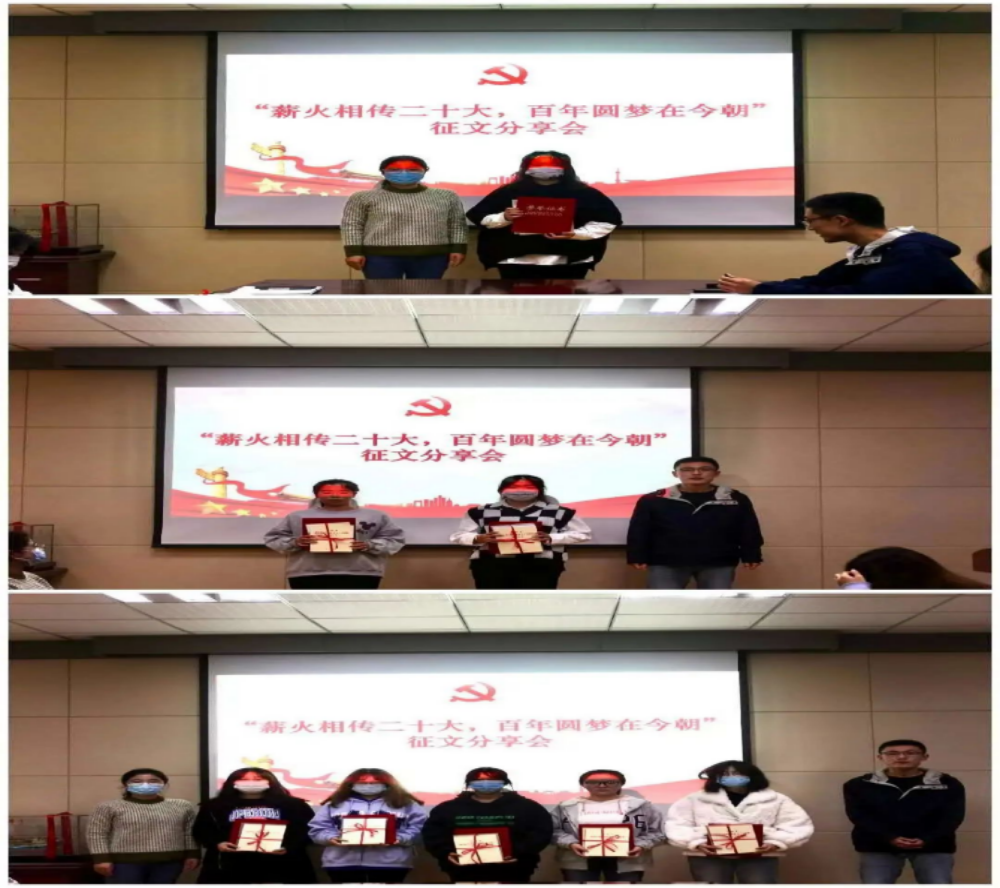 四位同学敞开心扉,表达了自己对于党的二十大精神的理解,抒发了为建设祖国贡献力量的豪情壮志。韩语221班王子玥同学的《青春献礼二十大,建功逐梦新征程》谈到青年党员是时代的晴雨表,要做到把牢理想信念的总开关,在大是大非面前旗帜鲜明,成为一名“靠得住、干得来、顶得上”的新时代青年;英语221班王馨苒同学的《回望过往奋斗路,眺望前方奋进路》提出将时刻为理想而努力,牢固树立“为天地立心,为生民立命,为往圣继绝学,为万世开太平”的理想,不断强化自身专业能力,不断增强学习的主动性、创造性,愿意以行动证明自己的决心;韩语221班李瑞雯同学分享了文章《以青春之我,深刻学习党的二十大精神》,声情并茂地讲述了抗疫过程中党员们挺身而出的动人故事,并抒发了自己今后的志向;日语221班张丹忆同学的《红船明烛照天烧》则是描绘了建党百年的艰难历程,并呼吁广大青年坚定跟党走的信念,为中国特色社会主义事业贡献自己的力量,在新时代中谱写属于自己的青春华章。